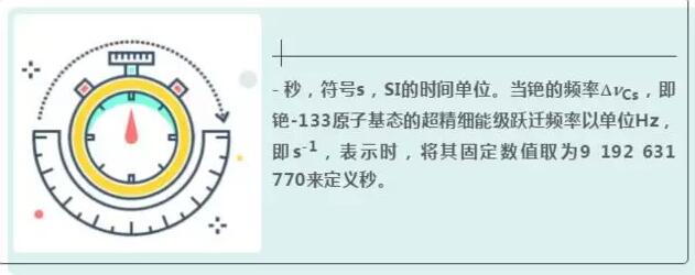 - 秒,符號s,SI的時間單位。當銫的頻率DnCs,即銫-133原子基態(tài)的超精細能級躍遷頻率以單位Hz,即s-1,表示時,將其固定數(shù)值取為9 192 631 770來定義秒。