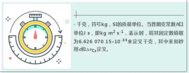 - 千克,符號kg,SI的質(zhì)量單位。當普朗克常數(shù)h以單位J s,即kg m2 s-1,表示時,將其固定數(shù)值取為6.626 070 15′10-34來定義千克,其中米和秒用c和DnCs定義。