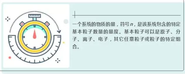 一個系統(tǒng)的物質(zhì)的量,符號n,是該系統(tǒng)包含的特定基本粒子數(shù)量的量度?;玖W涌梢允窃?、分子、離子、電子,其它任意粒子或粒子的特定組合。