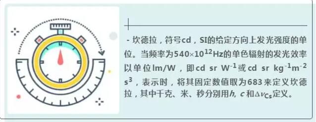 -坎德拉,符號cd,SI的給定方向上發(fā)光強度的單位。當頻率為540′1012Hz的單色輻射的發(fā)光效率以單位lm/W,即cd sr W-1或cd sr kg-1m-2 s3,表示時,將其固定數(shù)值取為683來定義坎德拉,其中千克、米、秒分別用h, c 和DnCs定義。